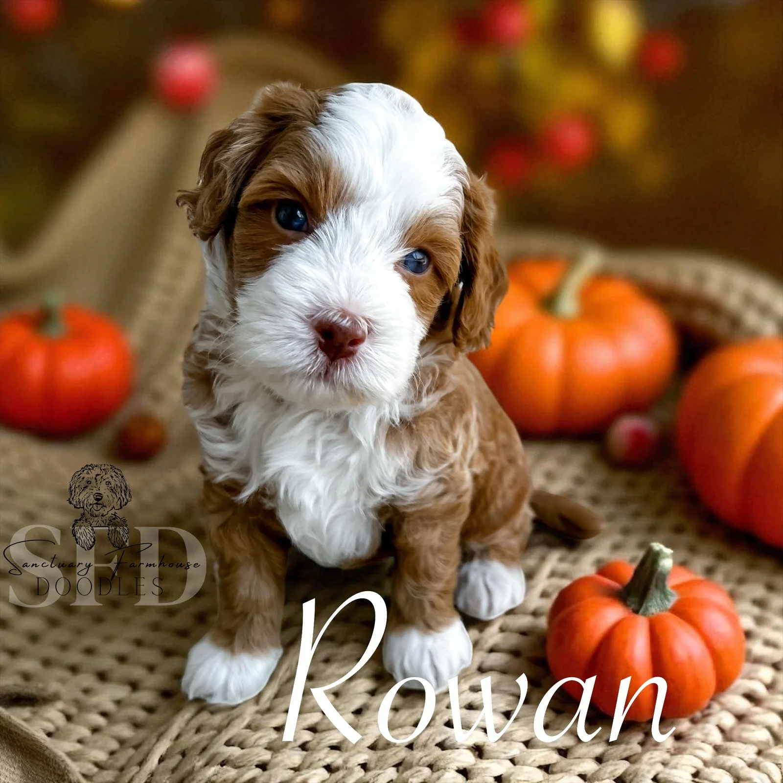 Male- red & white tuxedo w/brown nose - Mini Bernedoodle 18-30 lbs