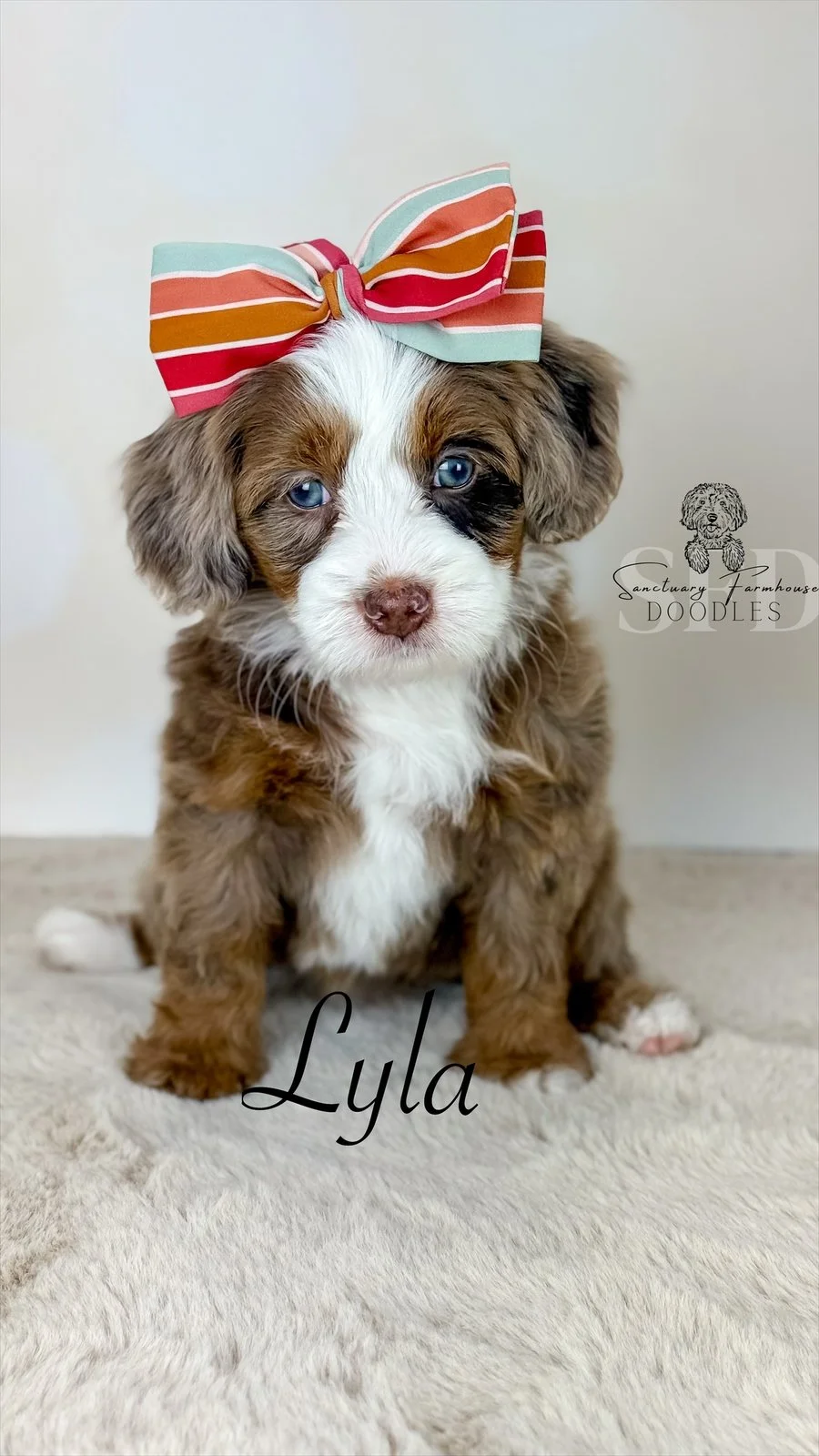 Female- tri chocolate merle- Mini Bernedoodle 18-30 lbs