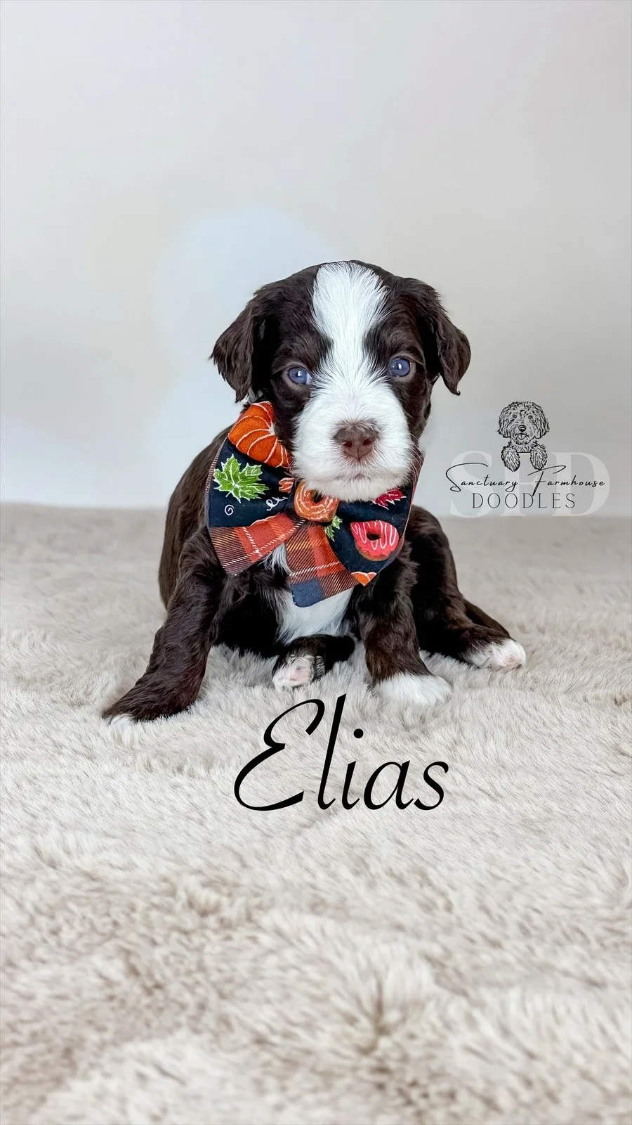 Male- chocolate & white tuxedo - Mini Bernendoodle 18-30 lbs