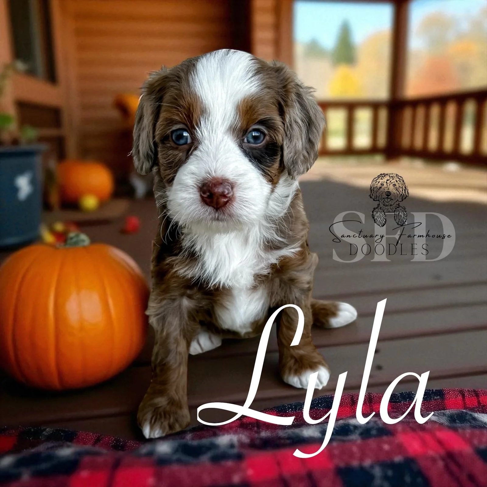 Female- tri chocolate harlequin merle - Mini Bernedoodle 18-30 lbs