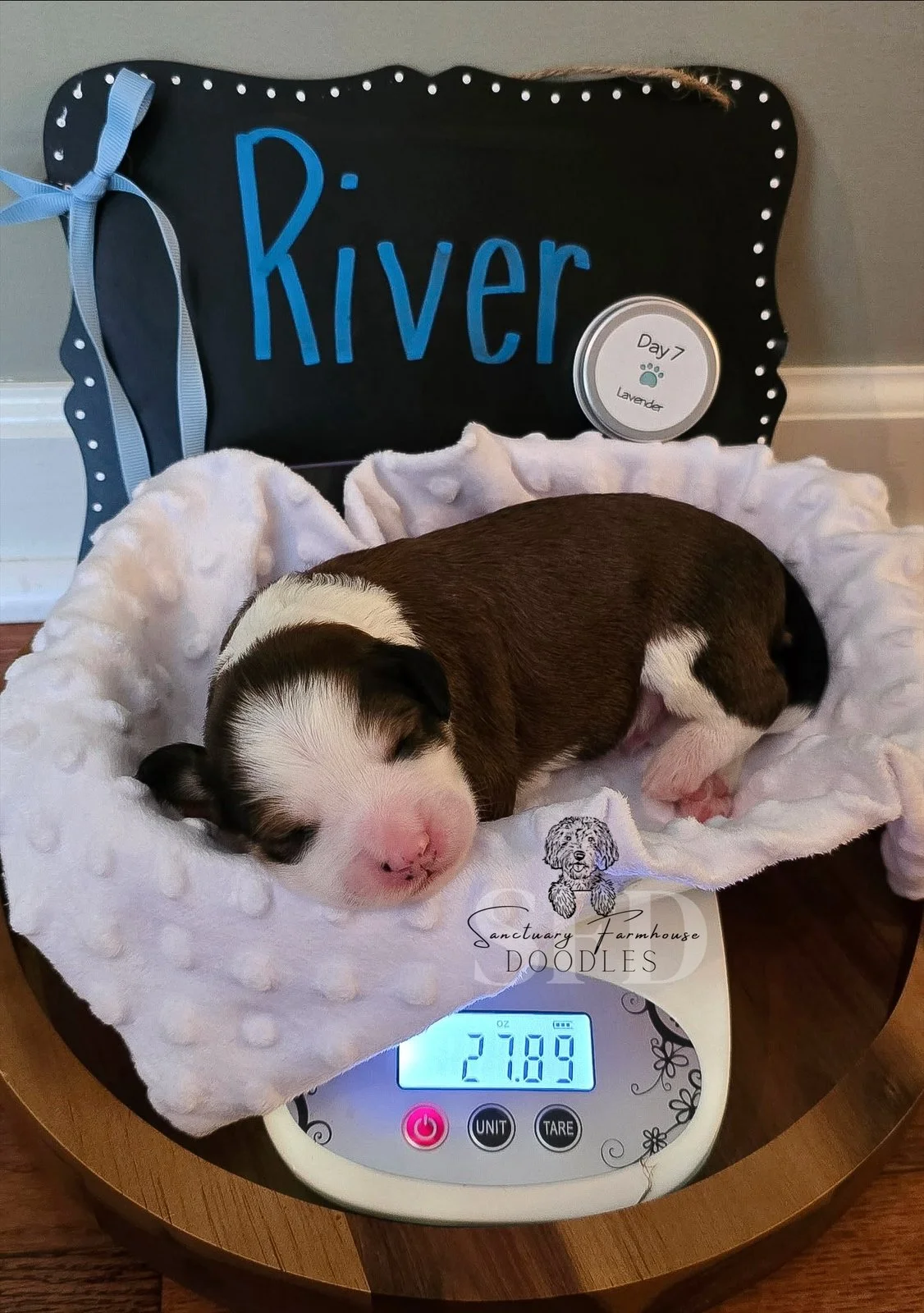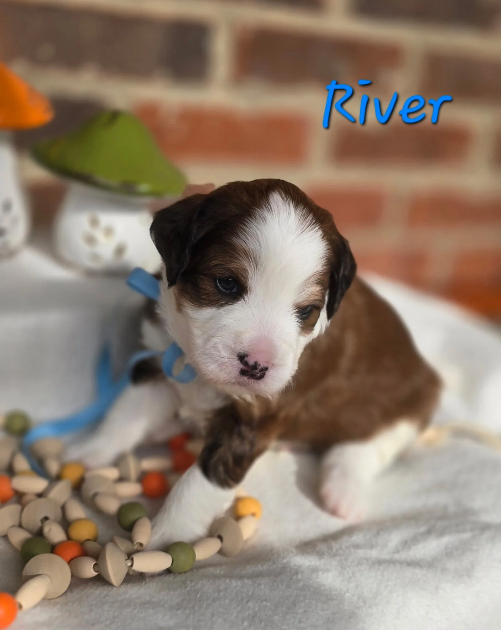 Male- red & white tuxedo - Mini Bernedoodle 30-40 lbs