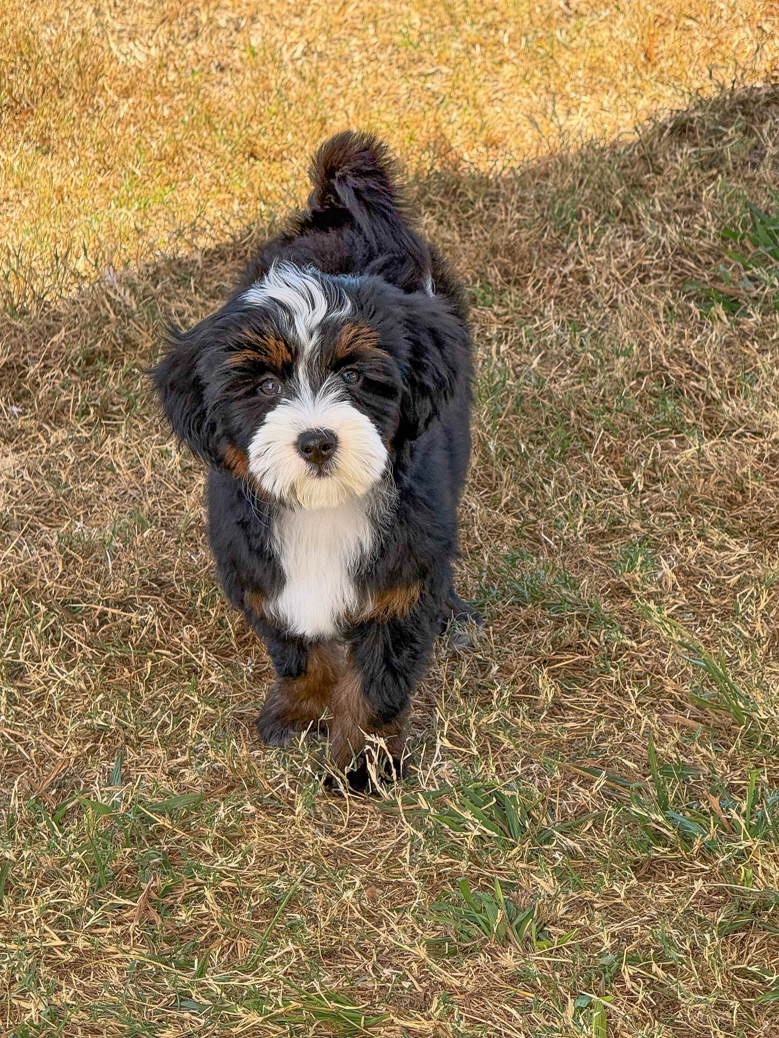 expected weight 25 pounds Mini Bernedoodle pending ofa’s a beautiful sable girl that’s so loving with a touch of spice